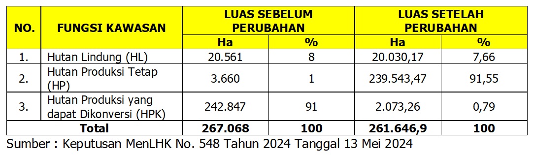 Pada tabel diatas, diketahui bahwa wilayah KPHP Unit II pada UPTD KPHP Santan berdasarkan fungsinya terbagi menjadi 3 yaitu : Hutan Lindung (HL) seluas ±20.030,17 Ha, Hutan Produksi Tetap (HP) seluas ±239.543,47 Ha dan Hutan Produksi yang dapat Dikonversi (HPK) seluas ±2.073,26 Ha.