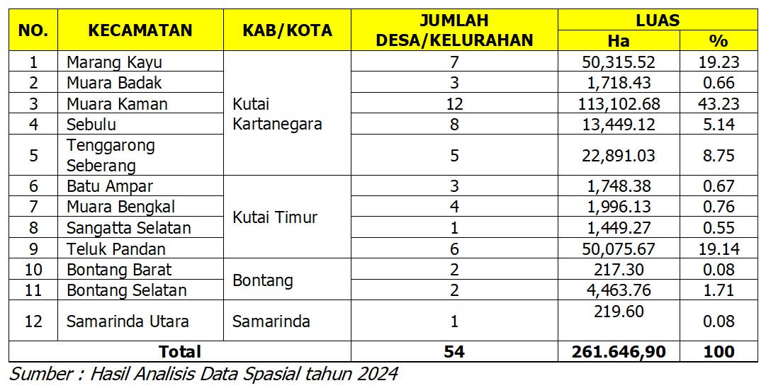 Berdasarkan data analisis peta administrasi, terdapat 54 desa yang berada di dalam dan sekitar wilayah pengelolaan KPHP Unit II Santan pada UPTD KPHP Santan dan sangat berdampak terhadap wilayah kelolanya, sebagaimana :